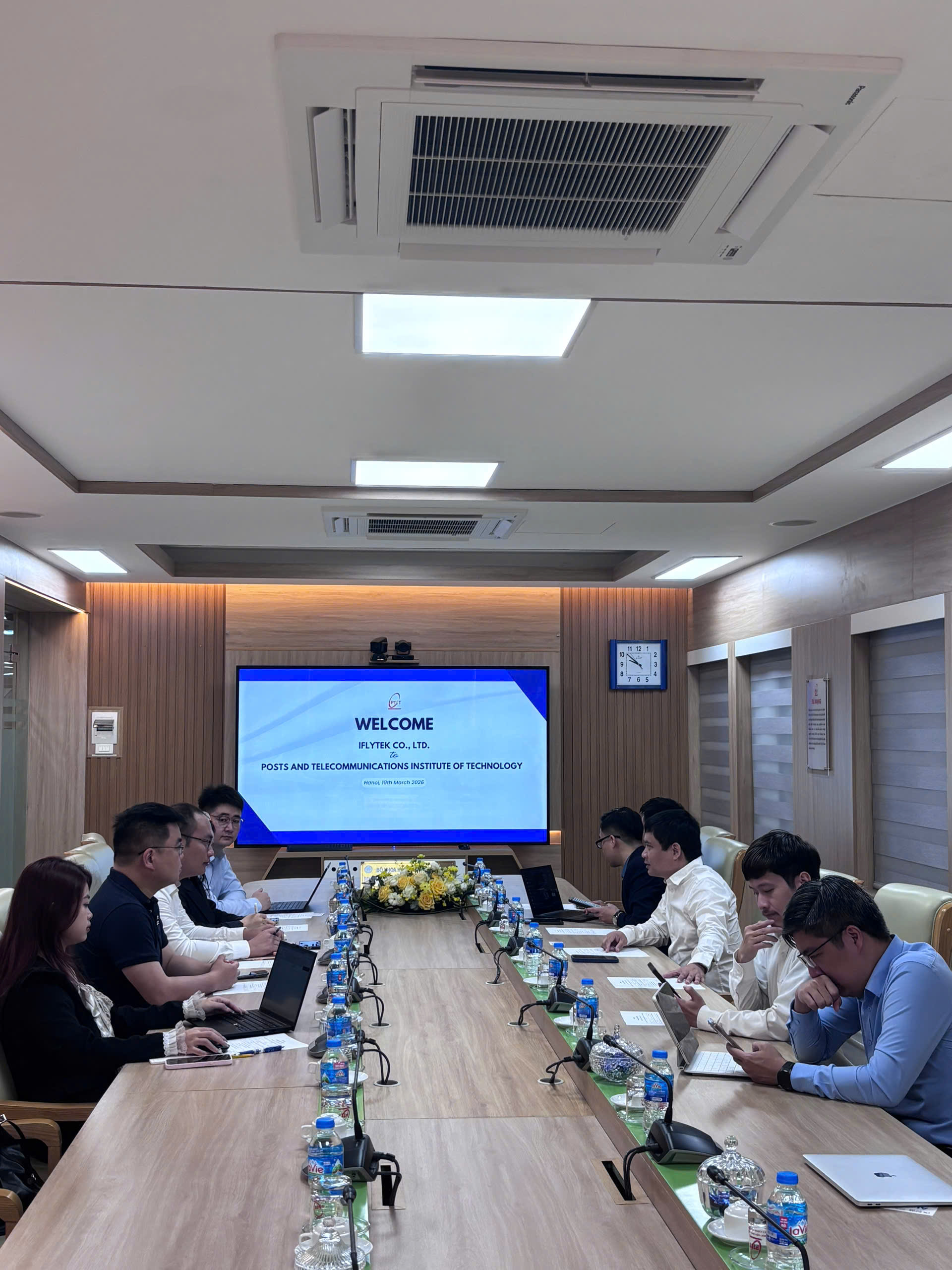 Sáng ngày 19/3/2026, tại Học viện Công nghệ Bưu chính Viễn thông (PTIT) đã diễn ra buổi làm việc giữa Học viện và Tập đoàn iFlyTek (Trung Quốc) nhằm trao đổi định hướng hợp tác trong lĩnh vực trí tuệ nhân tạo (AI), đặc biệt là ứng dụng AI trong giáo dục và đào tạo nguồn nhân lực chất lượng cao.