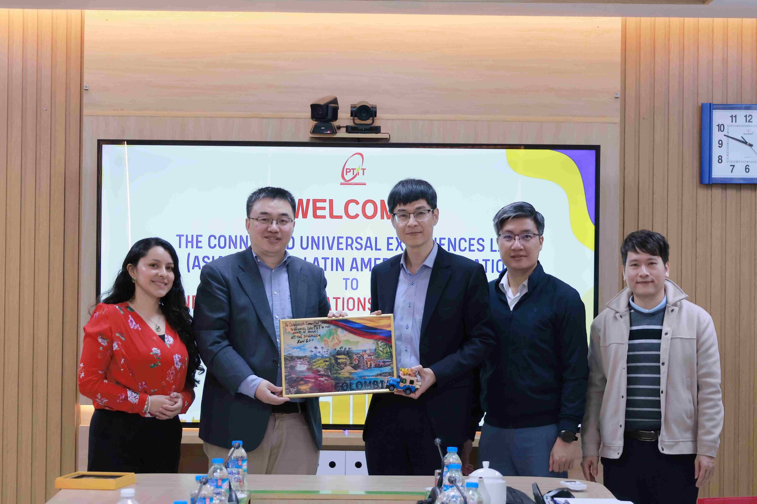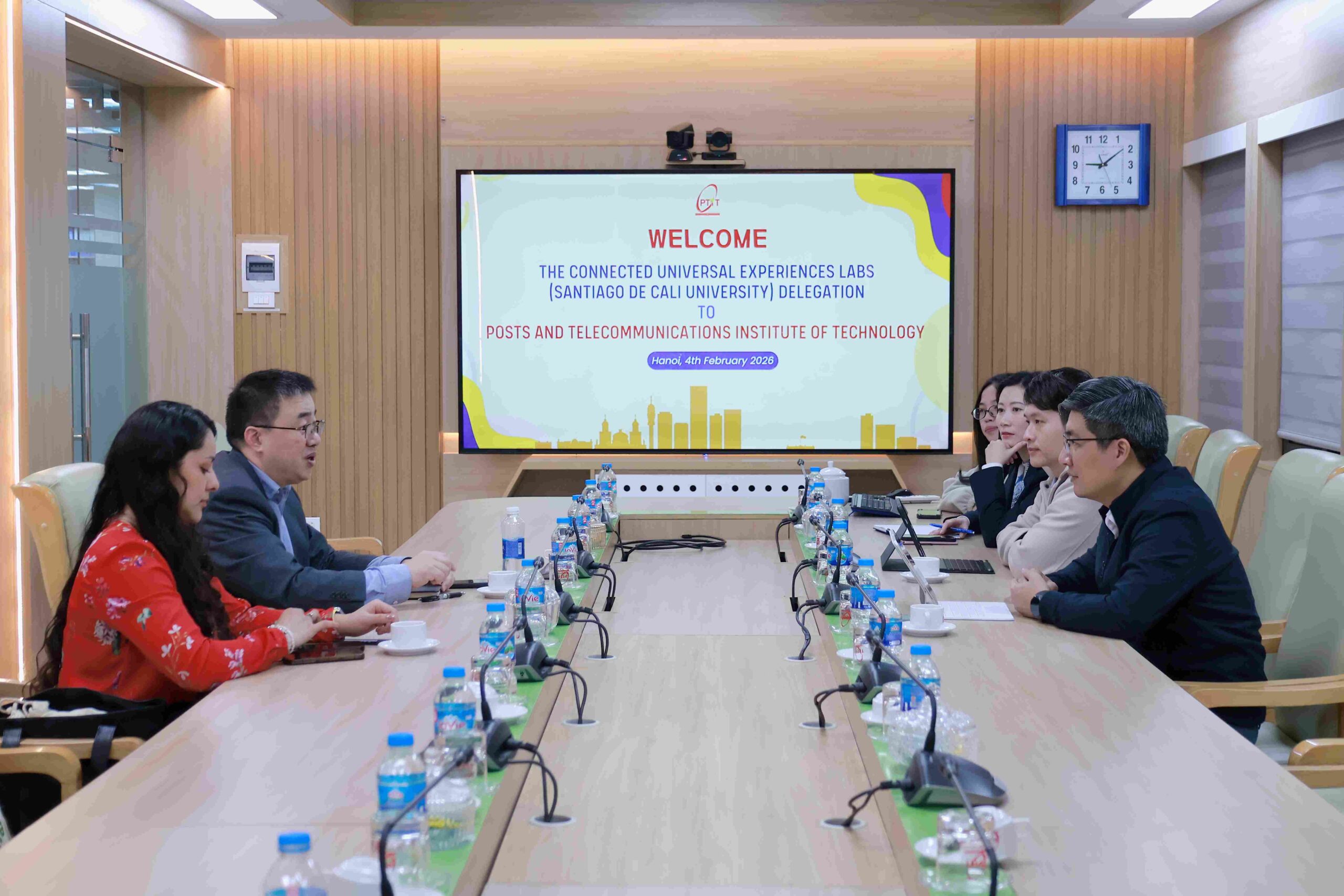 Ngày 4/2/2026, tại cơ sở đào tạo Hà Nội, Học viện Công nghệ Bưu chính Viễn thông (PTIT) đã đón tiếp đoàn đại biểu đến từ Phòng thí nghiệm Connected Universal Experiences (CUE Labs), trực thuộc Đại học Santiago de Cali (Colombia), khu vực Châu Á – Thái Bình Dương và Mỹ Latinh. Đoàn công tác do Tiến sĩ Xun Luo – Giám đốc CUE Labs dẫn đầu. Tham dự và làm việc với đoàn, về phía PTIT có GS.TS Từ Minh Phương – Bí thư Đảng ủy Học viện, cùng đại diện lãnh đạo Trung tâm Đổi mới Sáng tạo và Khởi nghiệp, Phòng Quản lý Khoa học và Hợp tác Quốc tế, Khoa Trí tuệ Nhân tạo và các đơn vị chuyên môn liên quan.
