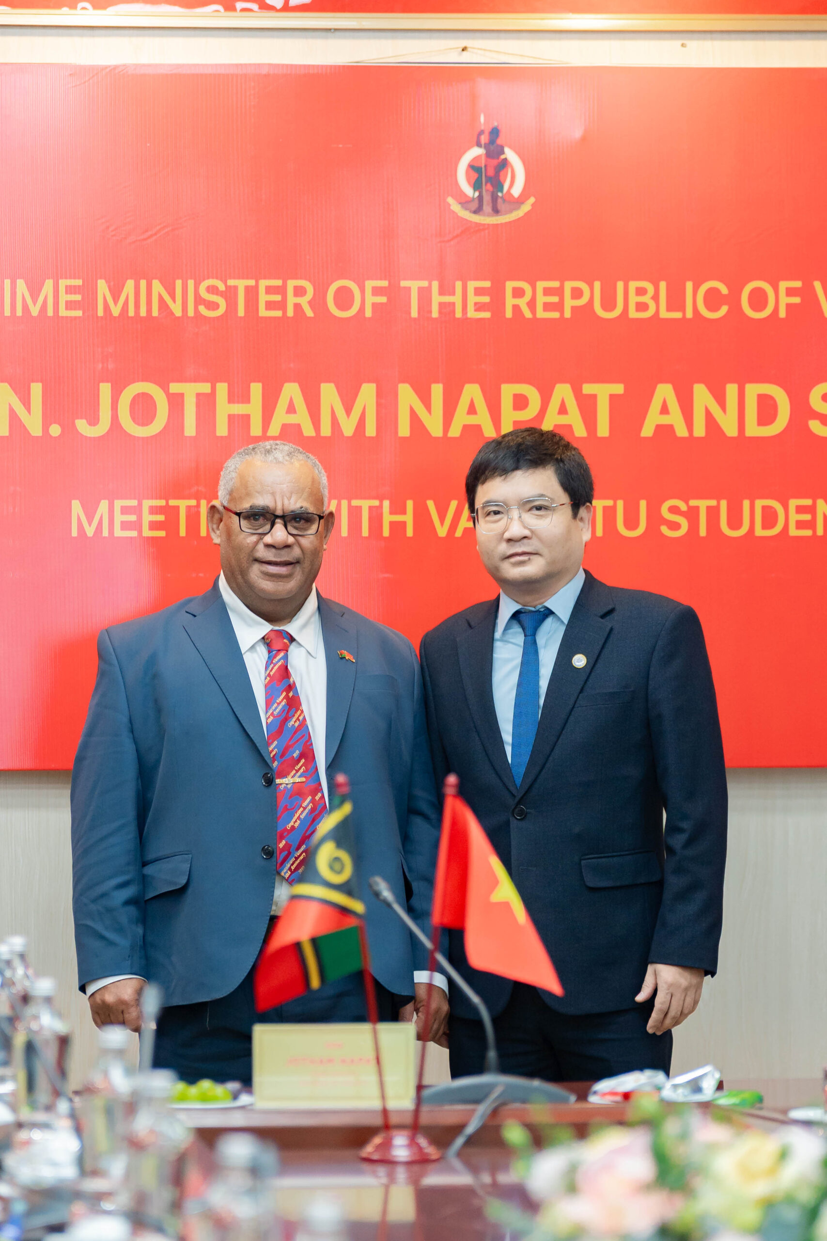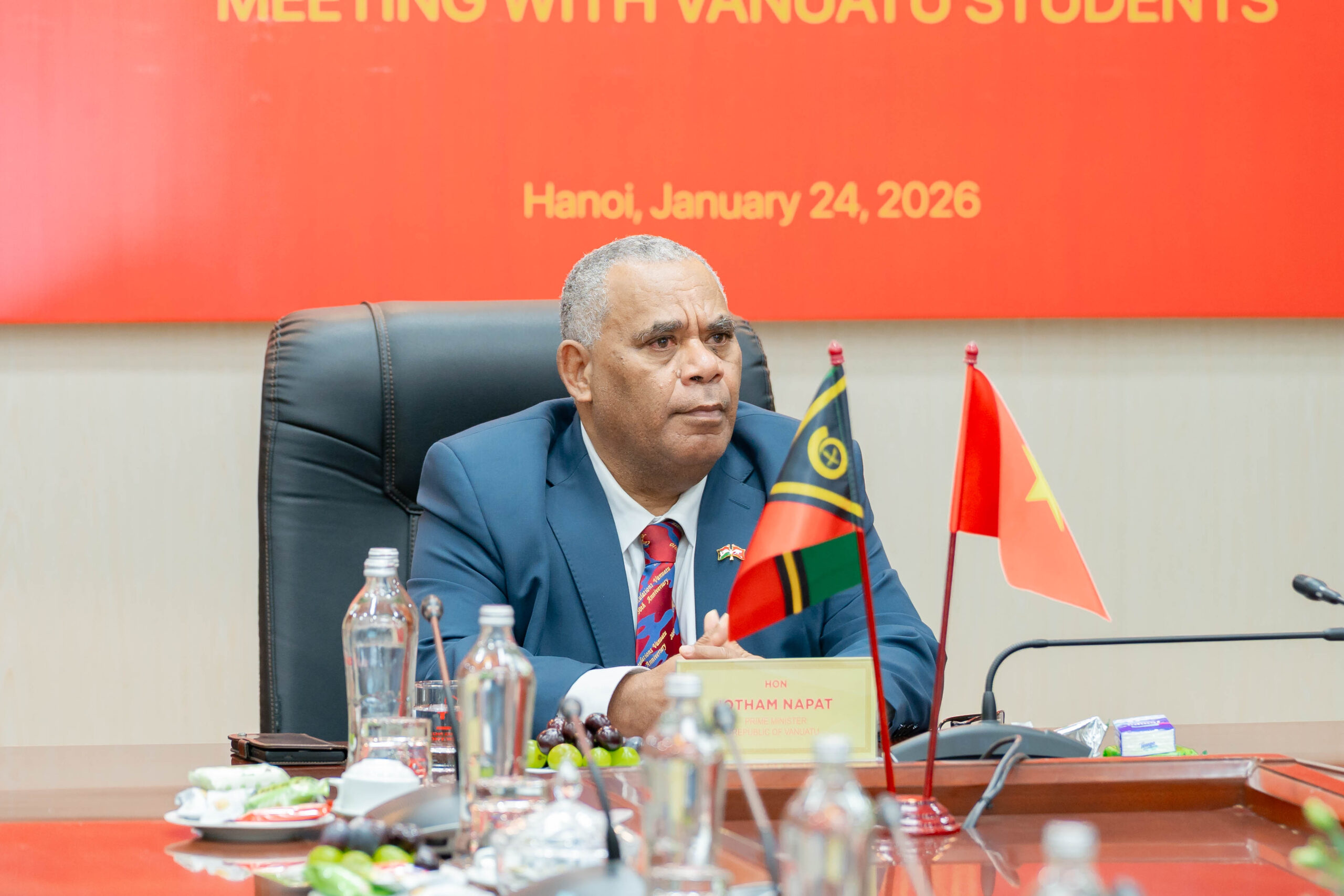 Là một trong những nội dung được Thủ tướng đặc biệt quan tâm, Thủ tướng Vanuatu Jotham Napat đã có buổi gặp gỡ, giao lưu thân mật với các lưu học sinh Vanuatu đang theo học tại Việt Nam. Tại đây, Thủ tướng bày tỏ niềm tự hào khi chứng kiến các sinh viên Vanuatu được học tập trong môi trường giáo dục hiện đại, năng động tại các trường đại học Việt Nam; đồng thời khẳng định giáo dục và đào tạo nguồn nhân lực chất lượng cao là nền tảng quan trọng cho sự phát triển bền vững của đất nước Vanuatu trong tương lai.
