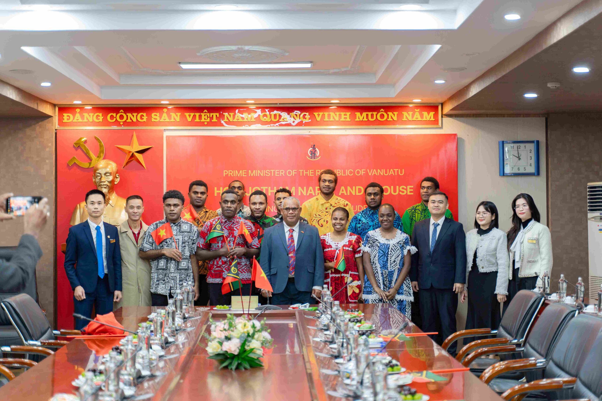 Sáng ngày 24/01/2026, Thủ tướng Nước Cộng hòa Vanuatu Jotham Napat và đoàn đại biểu cấp cao Lãnh sự quán Vanuatu tại Việt nam đã tới thăm xã giao Học viện Công nghệ Bưu chính Viễn thông (PTIT) và gặp mặt thân mật các sinh viên Vanuatu đang theo học tại Học viện Công nghệ Bưu chính Viễn thông và Trường Đại học Hàng hải Việt Nam. Đây là chuyến thăm phi chính thức nhưng thể hiện sự quan tâm sâu sắc của Chính phủ Vanuatu đối với công tác đào tạo nguồn nhân lực và hợp tác giáo dục giữa hai quốc gia.